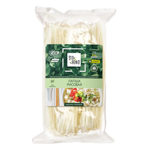 Состав: Мука рисовая 98%, вода питьевая 2%. Пищевая ценность 100 г продукта (средние значения) : белки - 6,1 г, жиры - 0,5 г, углеводы - 80,9 г. Энергетическая ценность 100 г продукта: 352,5 ккал/ 1497,5 кДж