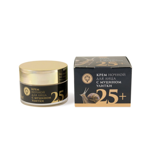 Муцин улитки обладает омолаживающим свойством, хорошо увлажняет кожу. Содержит коллаген и гиалуроновую кислоту – строительные материалы кожного покрова. Ускоряет обновление клеток кожи, сужает поры, уменьшает воспаление. Специальная формула крема обеспечивает необходимый уход за кожей лица после 25 лет. Основной действующий компонент муцин улитки содержит множество полезных для кожи элементов и заботится о ее увлажнении. Экстракты алоэ и ламинарии оказывают противовоспалительное действие. Масло рисовых отрубей и аллантоин питают кожу, делают ее более мягкой и гладкой. Витамин С выравнивает цвет лица.