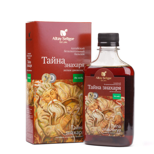 Бальзам серия «Щедрый Алтай» "Тайна Знахаря" Состав: Сироп (сахар, вода питьевая), колер (сахар, вода питьевая), морс из растительного сырья (вода питьевая, орех кедровый, цветки лабазника вязолистного, корневища аира, лист крапивы, трава хвоща, корни и корневища девясила, лист черной смородины, трава горца птичьего (спорыша), почки сосны обыкновенной, лавровый лист сухой), сок черноплодной рябины, мед натуральный, регулятор кислотности (лимонная кислота). Описание: Алтайский бальзам на травах рекомендуется при воспалении суставов и соединительной ткани. Безалкогольный бальзам обладает противовоспалительными, антисептическими и бактерицидными свойствами. Хвощ, лабазник, девясил, горец птичий - активные действующие травы в бальзаме. Травяной сбор в бальзаме способствует снятию воспалительных процессов в суставах, уменьшению болезненных ощущений при движении. При постоянном применении бальзама на травах укрепляется иммунитет, улучшается в целом состояние опорно- двигательного аппарата.