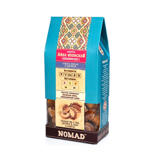 Натуральные цукаты NOMAD из японской айвы — это лакомство, которое порадует любителей сладкого и полезных перекусов. Цукаты из японской айвы идеально подходят для самостоятельного употребления, добавления в выпечку, десерты, каши и йогурты. Благодаря своему кисло-сладкому вкусу и приятной текстуре, цукаты станут отличным дополнением к чашечке чая или кофе. Натуральные цукаты NOMAD из японской айвы удобно и вполне логично использовать для украшения тортов, пирожных и куличей. Можно добавлять в мюсли, кисели, запеканки, в тесто для пирогов, шарлоток и печенья. Мы изготавливаем цукаты без термической обработки. Используем собственную оригинальную рецептуру. Цукаты из японской айвы — это нежнейший продукт, созданный на основе щадящих методик, разработанных нами более 10 лет назад. Температура нагревания не превышает 40 градусов. Готовый продукт сохраняет практически все полезные элементы и свойства. Цукаты NOMAD из японской айвы — это не только вкусно, но и полезно! В народе неслучайно японскую айву называют "северным лимоном". Она богата витаминами А, В, С, РР и минералами. Содержит маргний, фосфор, железо, клетчатку. Японская айва является отличным антиоксидантом, улучшает работу ЖКТ, сердечно-сосудистой системы и нервной системы. Она может помогать при анемии, диарее, гастрите и токсикозе, а также полезна для кожи и при стрессе. В составе цукатов японской айвы только свежие плоды и свекловичный сахар, что делает их подходящим вариантом для веганов и вегетарианцев. Продукт не содержит ГМО, ароматизаторов и красителей, что гарантирует его безопасность и натуральность. Прекрасно подходит в качестве функционального лакомства для детей. Кликнув на наш логотип, вы сможете ознакомиться с полным ассортиментом нашей авторской продукции. NOMAD — это отличный способ порадовать себя и близких вкусными и ценными экопродуктами, подобрать оригинальный и универсальный презент, подарок на любой праздник.