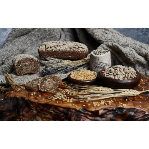 Состав (без муки): пророщенная рожь; семена льна и конопли; хмеле-медовая закваска с добавлением экстракта ламинарии японской; соль гималайская.