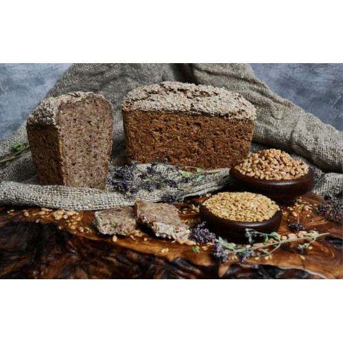Состав (без муки): пророщенная пшеница; семена льна; хмеле-медовая закваска с добавлением экстракта ламинарии японской; соль гималайская.