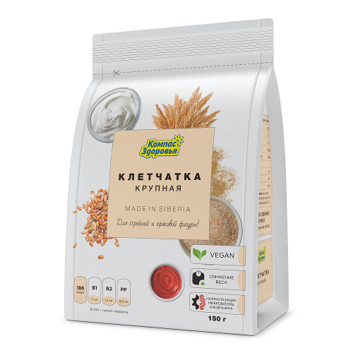 На основе: Пшеницы Состав: клетчатка пшеничная. Энергетическая ценность: 186 Ккал/780 КДж Масса: 150 гр. Противопоказания: Индивидуальная непереносимость Способ применения: Рекомендуется принимать 1-2 ст. ложки клетчатки на 1 стакан жидкости (добавлять в йогурт, кефир, сок, бульон, жидкий соус) Условия хранения: хранить при температуре не выше 25 °С в сухом месте Срок годности: 12 месяцев