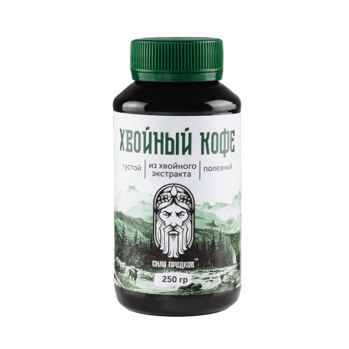 Настоящий густой полезный натуральный хвойный экстракт, тонизирует и придает сил как кофейный напиток, отчего его и назвали хвойным кофе. Действует более ярко, чем пихтовый экстракт, но не так ярко как кедровый, за счет смешивания кедрового и пихтового экстракта. Делается из сибирской хвойной лапки дикорастущих кедра и пихты в отдаленных горных района сибирского региона. Это натуральное и полезное питание для всей семьи. Данный детокс напиток можно применять так же во время диеты. Хвойный кофе в отличии от обычного кофе не имеет противопоказаний и подойдет любому члену семьи. Соблюдайте дозировки и наращивайте их по необходимости и постепенно, так как в натуральном хвойном напитке много витамина С, хоть и природного. Лучшая альтернатива чаю и кофе в России. Отечественный продукт. Содержит витамины в биодоступной природной форме: железо, йод, цинк, кремний, серебро, марганец, медь, витамин С.