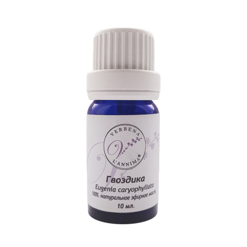 СВОЙСТВА ЭФИРНОГО МАСЛА ГВОЗДИКИ Эфирное масло гвоздики получают из побегов гвоздичного дерева, родиной которого является Индонезия. Привычный для нас вид специи гвоздики не что иное, как не раскрывшиеся почки гвоздичного дерева. Основной компонент эфирного масла гвоздики -эвгенол. Содержание эвгинола в масле гвоздики от Verbena L’annima составляет 85%. Именно это соединение обеспечивает гвоздике мощный антисептический эффект. Кроме этого, эфирное масло гвоздики обладает противовирусным, спазмолитическим, антипаразитарным, местным обезболивающим действием, отпугивает насекомых, увеличивает объём и активность памяти.