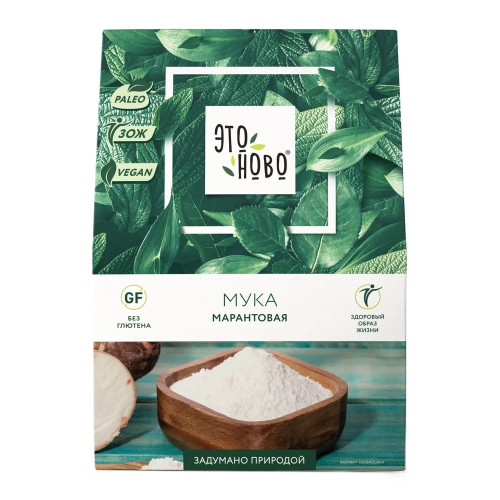 Состав: мука марантовая Пищевая ценность 100 г продукта (средние значения): белки – 0,3 г, жиры – 1,0 г, углеводы – 84,9 г. Энергетическая ценность 100 г продукта: 357 ккал/1494 кДж