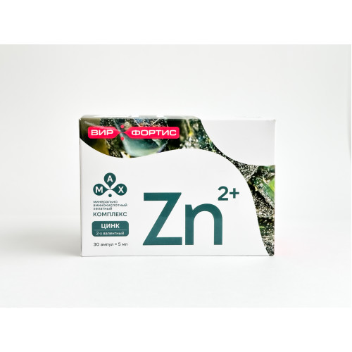 Концентрат напитка «MAX Комплекс» с цинком поддерживает гормональный баланс, обмен веществ и уровень сахара в крови. Он снижает влияние стресса, повышает выносливость и укрепляет иммунную систему. Цинк также улучшает работу мозга, состояние кожи и способствует предотвращению выпадения волос. Уникальные свойства минерального аминокислотного хелатного комплекса с цинком: 1. Нормализует выработку гормонов, в том числе тестостерона 2. Активизирует метаболические процессы 3.Регулирует уровень сахара, усиливает выработку инсулина, защищает стенки сосудов 4.Повышает выносливость и работоспособность 5.Минимизирует уровень кортизола (гормона стресса) 6.Укрепляет иммунную систему 7.Улучшает работу мозга 8.Улучшает состояние кожи, предотвращает выпадение волос Состав: водный экстракт пихты сибирской (полифенолы, флавоноиды, витамины А, В2, С, Е, минералы Mg, Zn), глицинат цинка (глицин, Zn(II)) Форма выпуска: 30 ампул по 5 мл Способ применения: до еды, допускается разведение в соках или воде Продолжительность приема: 1 месяц, при необходимости прием можно повторить Противопоказания: индивидуальная непереносимость компонентов Условия хранения: при комнатной температуре, в сухом и защищенном от света месте, не доступном для детей Срок годности: 2 года с даты изготовления, указанной на упаковке Производство: Россия