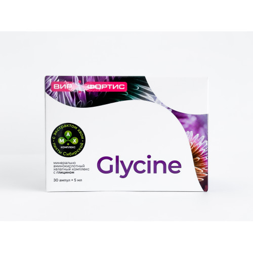 Концентрат напитка «MAX Комплекс» с глицином поддерживает работу нервной системы и повышает умственную работоспособность. Он снижает стресс, нервное напряжение и способствует эмоциональной стабильности. Глицин улучшает адаптацию организма и уменьшает проявления сосудистых и мозговых нарушений. Уникальные свойства минерального аминокислотного хелатного комплекса с глицином: 1.Повышает умственную работоспособность и устойчивость к стрессу 2.Уменьшает нервное и умственное напряжение 3.Положительно влияет на деятельность нервной системы 4.Уменьшает агрессивность, конфликтность, повышает социальную адаптацию 5.Уменьшает вегетососудистые расстройства (в т.ч. в климактерическом периоде) 6.Уменьшает выраженность мозговых расстройств при ишемическом инсульте и черепно-мозговых травмах Состав: глицин, водный экстракт пихты сибирской (биофлавоноиды, полифенолы, витамин С, В1, В2, ВЗ, В6, бета-каротин, витамин Р (рутин), минералы Fe, Zn, K, Mg, Na, Cu, Co и другие минералы) Форма выпуска: 30 ампул по 5 мл Способ применения: 1 ампула в день до еды, допускается разведение в соках или воде Продолжительность приема: 1 месяц, при необходимости прием можно повторить Противопоказания: индивидуальная непереносимость компонентов Условия хранения: при комнатной температуре, в сухом и защищенном от света месте, не доступном для детей Срок годности: 2 года с даты изготовления, указанной на упаковке Производство: Россия