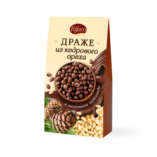 Ядро кедрового ореха, молочный шоколад (какао-масло, какао тёртое, сахар, сухие молочные продукты, лецитин, ароматизатор ванилин)