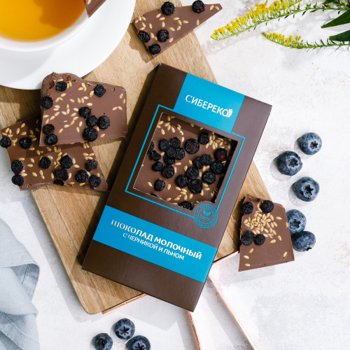 Шоколад молочный с черникой и льном 100 г СибирьЭко