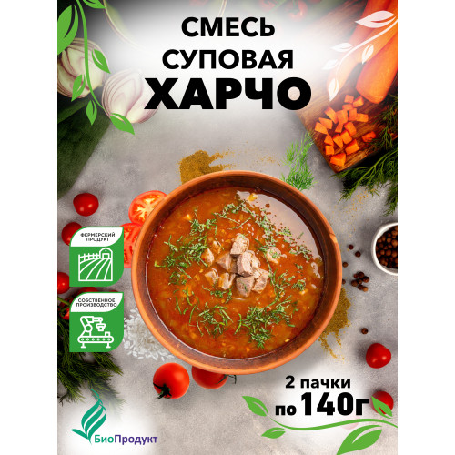 Ароматная суповая смесь для приготовления супа харчо. В составе рис, томаты и пряности, которые создают насыщенный вкус без лишних усилий. Подходит для быстрого домашнего обеда или ужина. Характеристики: • Тип продукта: суповая смесь «Харчо» • Вес нетто: 2×100 г (200 г) • Выход готового супа из одной пачки 100 грамм: 3–4 литра супа • Время приготовления: 40 минут • Упаковка: две пачки суповой смеси харчо рассчитаны для приготовления 20 порций. В одной упаковке сушеного продукта (100 грамм) содержится 1,5 килограмма свежих плодов. • Способ приготовления: варка на плите. Состав:рис, томатная паста, лук репчатый, морковь, томаты, паприка, душистый перец, чёрный перец, лавровый лист. Способ приготовления: Содержимое одного пакета высыпать в 3–4 литра кипящей воды, при желании добавить соль и любимые специи. Варить на слабом огне около 40 минут до полной готовности крупы и овощей. Компания «БиоПродукт» является победителем конкурса в номинации «Агростартап». Наше продовольствие имеет все сертификаты соответствия и отвечает всем госстандартам. Проходит несколько этапов строгого контроля характеристик. Поэтому вы можете быть уверены в высоком качестве и безопасности продукции. Сырье мы закупаем у местных сельхозпроизводителей и фермеров из Владимирской области. Не содержат усилителей, ароматизаторов, соль, сахар. Без химических добавок, красителей, загустителей. Полностью экологичный и чистый продукт премиум класса. Каждый 10-ый пакетик супа отправляется в зону СВО в рамках гуманитарной помощи. Добавляйте бренд в любимые, чтобы быть в курсе новинок и акций. С уважением, руководитель компании Алексей Мокеев!