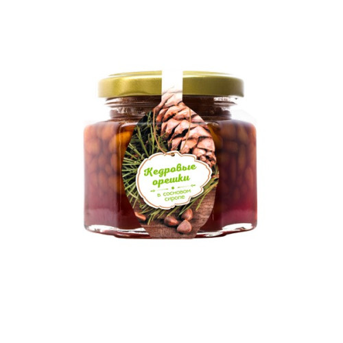 Ядро кедрового ореха, сахар, отвар из сосновой шишки, натуральный лимонный сок.Пищевая ценность в 100 г продукта: Белки - 2, 6 г, жиры - 12, 7 г, Углеводы – 59 г.Энергетическая ценность в 100 г продукта: 356 Ккал/ 1515 Кдж