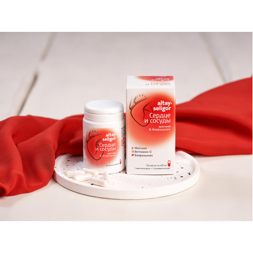 Состав: экстракт цветков и листьев боярышника, целлюлоза микрокристаллическая (носитель), витаминный комплекс (лактоза, аскорбиновая кислота (витамин С), токоферола ацетат (витамин Е), никотинамид (витамин В3), пиридоксина гидрохлорид (витамин В6), D-кальция пантотенат (витамин В5), рибофлавин (витамин В2), ретинола ацетат (витамин А), тиамина гидрохлорид (витамин В1), фолиевая кислота (витамин В9), биотин (витамин Н), цианокобаламин (витамин В12), экстракт красного клевера сухой, магния цитрат, диоксид кремния аморфный и стеарат кальция (агенты антислеживающие); капсула (желатин). Способ применения: взрослым по 1 капсуле 1 раз в день во время еды. Курс приема 1 месяц. Рекомендуется 3-4 курса в год. Перед применением проконсультироваться с врачом. Противопоказания: индивидуальная непереносимость компонентов. ТУ 10.89.19- 086-57339468-2022 Пищевая ценность в 100 г: белки – 1,5 г; жиры – 0 г; углеводы –11,0 г. Энергетическая ценность в 100 г: 710 кДж/170 ккал Срок годности: 2 года Условия хранения: Хранить в сухом, защищенном от прямых солнечных лучей, недоступном для детей месте, при температуре не выше 25°С при влажности воздуха не более 70%. Масса нетто: 30 капсул по 400 мг