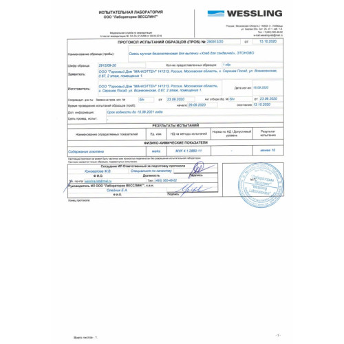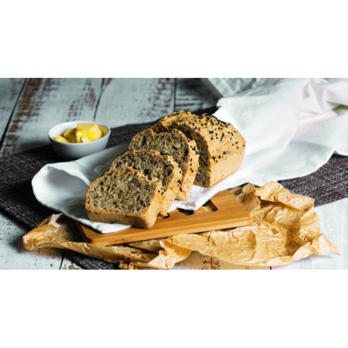 Состав: мука тапиоковая, мука пшенная, мука льняная, мука марантовая, льняное семя, разрыхлитель безглютеновый, соль гималайская розовая пищевая, загуститель: ксантановая камедь. Пищевая ценность 100 г продукта (средние значения): белки – 7,8 г, жиры – 3,9 г, углеводы – 65,9 г. Энергетическая ценность 100 г продукта: 330 ккал/1382 кДж