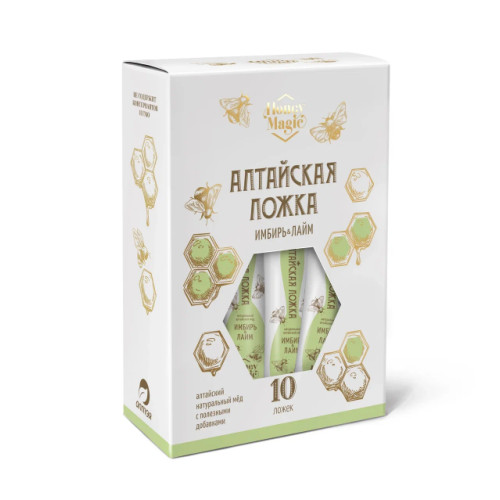 Honey Magic десерт медовый: Алтайская ложка мёд, имбирь и лайм; 10 ложек по 5 г
