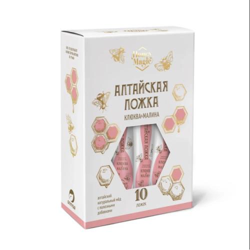 Honey Magic десерт медовый: Алтайская ложка мёд, клюква и малина; 10 ложек по 5 г