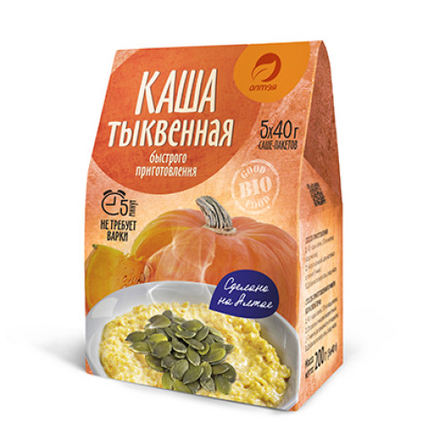 Каша Тыквенная (тыквенная мука, пшенные хлопья, кукурузные хлопья); не требует варки, 5 пакетов по 40 граммов