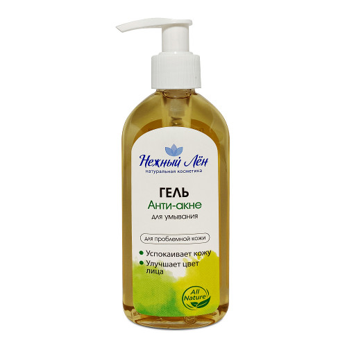 Состав дистиллированная вода, динатрия кокоил глутамат, кокамидопропилбетаин, коко глюкозид, экстракт календулы, экстракт ромашки, экстракт шиповника, экстракт коры дуба, масло лимона, масло мяты, салицилат натрия, дегидроацетат натрия Объем 200 мл Противопоказания Индивидуальная непереносимость Способ применения Легкими движениями распределите небольшое количество геля по влажной коже лица, помассируйте круговыми движениями 1-2 минуты и смойте теплой водой. После умывания рекомендуем воспользоваться лосьоном для проблемной кожи "Нежный Лён" Условия хранения Хранить при температуре не ниже +5 °С и не выше +25 °С Срок годности 21 месяц