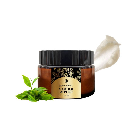 Аромат чайного дерева пряный, свежий, холодный, терпко-горьковатый, с оттенками запаха мускатного ореха, кардамона и эвкалипта. Его аромат способствует восстановлению организма после стрессов и перенесенного шока. Вдыхание испаряющегося масла чайного дерева помогает успокоиться, снять нервное напряжение, беспокойство. Аромат эфирного масла активизирует процессы восприятия и запоминания информации, способствует концентрации внимания, является мощным стимулятором умственной деятельности и источником интеллектуальной легкости. В косметологии — оно нормализует работу сальных желез, уменьшает раздражение и покраснение, помогает восстановить однородный цвет и рельеф кожи. Плюс ко всему чайное дерево обладает хорошим омолаживающим эффектом. Масло чайного дерева для кожи может помочь в таком деликатном деле, как предупреждение раздражений кожи при бритье в области «бикини». Благодаря высокому содержанию терпенов обладает сильным бактерицидным и противовоспалительным действием. Сочетая другие масла и баттеры — карите, кокоса, оливы, касторового масла с эфирным маслом чайного дерева — у нас получился воздушный крем, который способствует увлажнению кожи, препятствуя испарению влаги и шелушению. Питает кожу. Улучшает регенерацию клеток. Оказывает мощное защитное и антивозрастное действие. Подходит для сухой, чувствительной, увядающей, нормальной, комбинированной и детской кожи. Уровень камедогенности низкий или равен нулю. Полностью веганский продукт. Подходит детям и беременным женщинам. Отличная основа под макияж. Не оставляет жирных следов, не пачкает одежду. Великолепен для массажей лица и тела.