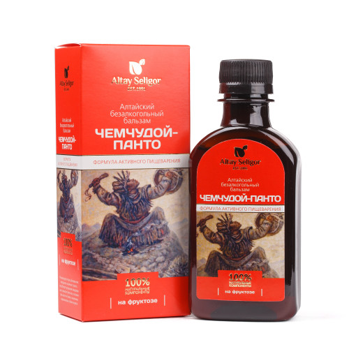 Бальзам на фруктозе "Чемчудой-Панто" Состав: Фруктоза, вода питьевая, сок черноплодной рябины, плоды черемухи обыкновенной, плоды шиповника, цветки ромашки, листья мяты перечной обмолоченные, плоды боярышника, трава душицы, трава чабреца обмолоченная, трава зверобоя, регулятор кислотности (лимонная кислота). Описание: Алтайский бальзам на травах способствует улучшению пищеварения, помогает облегчить состояние при изжоге и болях в кишечнике, нормализовать обмен веществ. Активные действующие компоненты: Фруктоза – природный сахар, способствует активизации процессов внутриклеточного метаболизма, не требует участия инсулина для усвоения в организме, благодаря чему нормализует уровень сахара в крови, снижает риск возникновения кариеса и диатеза, способствует быстрому восстановлению после физических и умственных нагрузок. Мята перечная – улучшает пищеварение, снижает спазмы и метеоризм в кишечнике, защищает кишечник от раздражения, оказывает противовоспалительное и желчегонное действие. Душица – применяется для улучшения аппетита, пищеварения, при болях в области кишечника. Чабрец – способствует снятию болей и спазмов в желудочно-кишечном тракте.