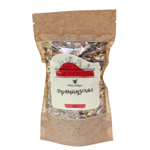 Травяной набор для настойки "Французская" Состав: лимонные корки, апельсиновые корки, анис, фенхель, кардамон, корица палочки, гвоздика почки. Описание: Травяной набор трав и специй для приготовления спиртовых настоек