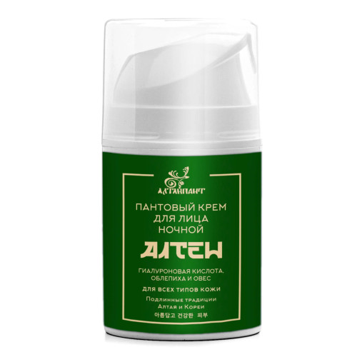 Пантовый крем для лица АЛТЕН дневной Пантовое масло, кокосовые триглицериды, экстракт родиолы розовой, гиалуроновая кислота, Д-пантенол, витамин Е, родниковая вода, эмульсионный воск. Объем 40 мл. Применение: Нанести крем на кожу массирующими движениями до полного впитывания. Свойства: Крем на основе пантового масла увлажняет, восстанавливает липидный барьер, стимулирует синтез коллагена. Родиола розовая (золотой корень) - мощный биостимулятор, усиливает микроциркуляцию, тонизирует, повышает упругость и эластичность кожи. Гиалуроновая кислота, проникая вглубь кожи, увлажняет и восстанавливает ее изнутри. Срок годности: 10 месяцев.