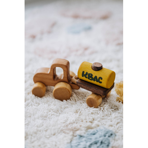 Деревянная машинка трактор с прицепом "Квас", 13*7*5 см