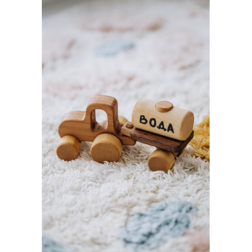 Деревянная машинка трактор с прицепом "Вода", 13*7*5 см